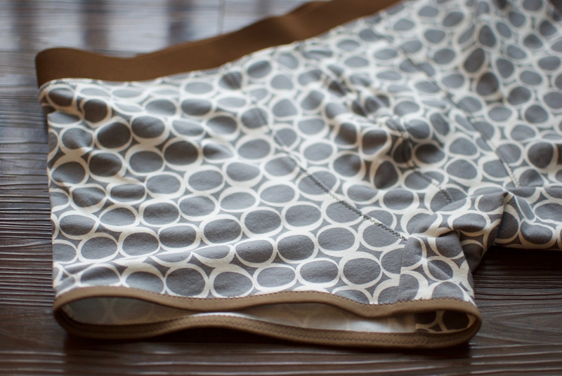 This pattern makes me extremely happy!! I had a whole bunch of sewing goals this year (learn how to sew: bra, pants, button-down shirt, t-shirt, etc.), and I think this one gives me the most satisfaction. Probably because this project isn’t for me, but for my husband and I get to see him beam every time he wears something I make for him. After test driving knit fabric from Riley Blake, Art Gallery, Nosh, Robert Kaufman, etc., the best fabric is by far Art Gallery. The knit is slightly heavier than Riley Blake and Nosh, so the edges don’t roll like crazy. It also has great stretch recovery. My second choice would be Nosh fabric, but I didn’t want to wait 1+ month for it to ship from Europe. I will probably make a “summer” set of underwear using Nosh fabric, because it is much lighter weight, soft, and has incredible stretch recovery.