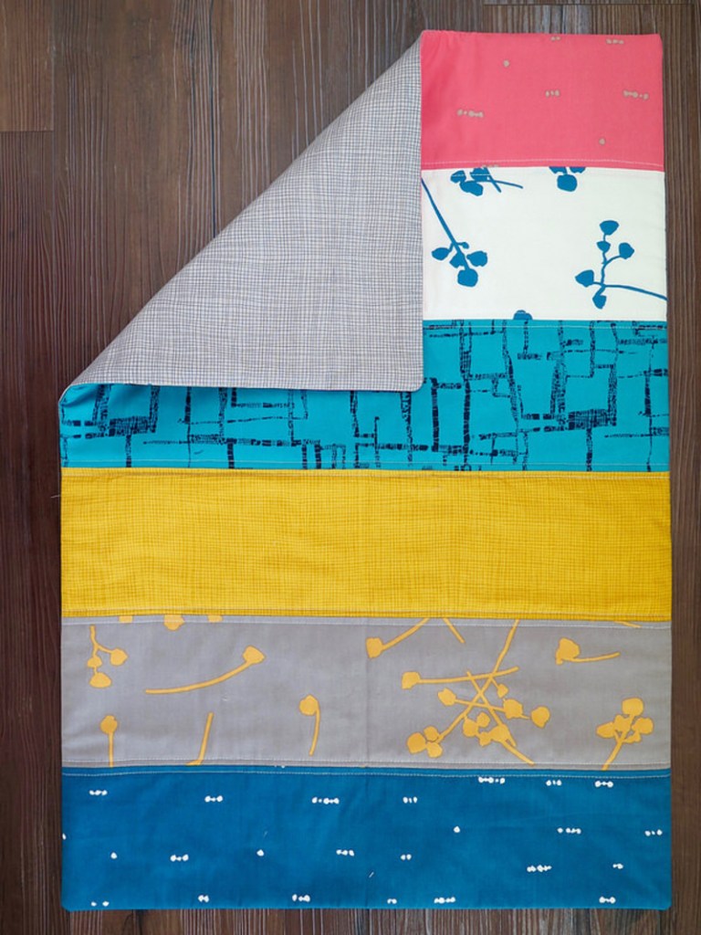 Cut the 1 yard of muslin into two pieces, 24″ x 36″. Cut the batting into two pieces, 23″ x 33″. Lay the muslin down first, center your batting piece on top of the muslin, and finally center the pieced pillow top RIGHT side UP. Now comes the scary part, machine quilting. I pinned my layers together. You could also use basting adhesive. Decide how you want to quilt.