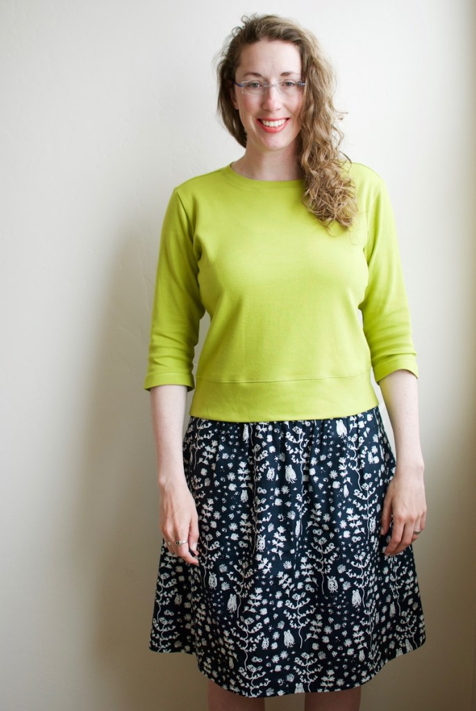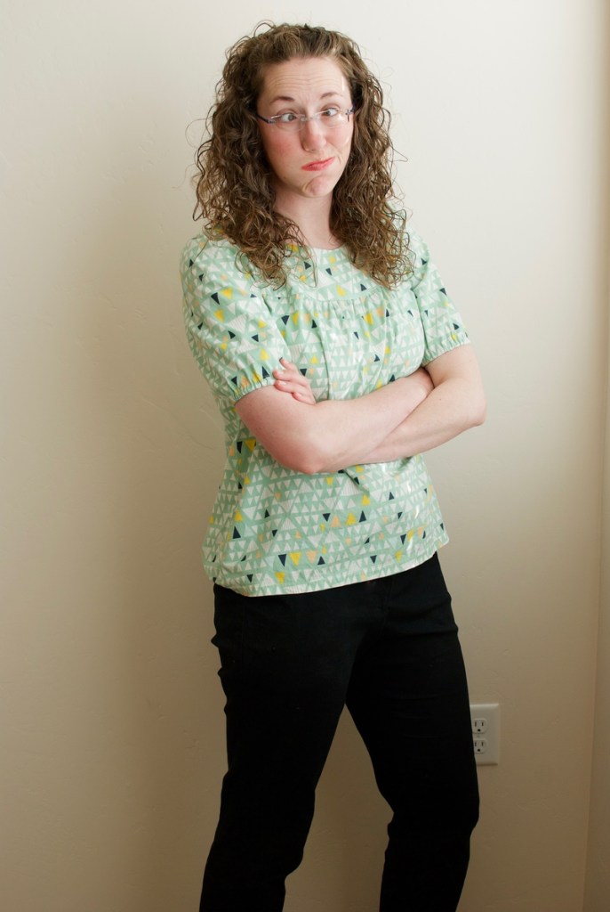 Today I wore Made by Rae Ruby Top and slim fit pants from Simplicity (1696). Both of these are pretty old items in my closet and I’m so happy they still fit. I was unsure how a gathered sleeve and elastic cuff would look on an adult. I know that style feature is adorable on baby clothes, but I didn’t know if it would look too girlish on me. Obviously if this shirt is still in my closet, then it’s is something I like wearing and I think it looks good. I made a version of this shirt using flannel and I love wearing it in the fall. Too bad I didn’t have an opportunity to wear it this month.