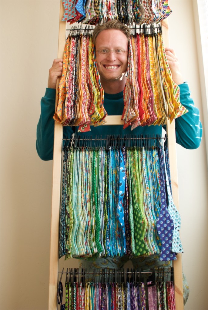 I know this isn’t about what Ryan is wearing today, but to be fair I think the end of the school year deserves some recognition. As a school teacher, Ryan wears a different bow tie every day. This is why I got into sewing. The first thing I sewed was a bow tie, over a 100 bow ties actually. Now Ryan’s collection, three years later, consists of over 180+ bowties. I do custom designed ties and pocket squares for adults and children (see here).