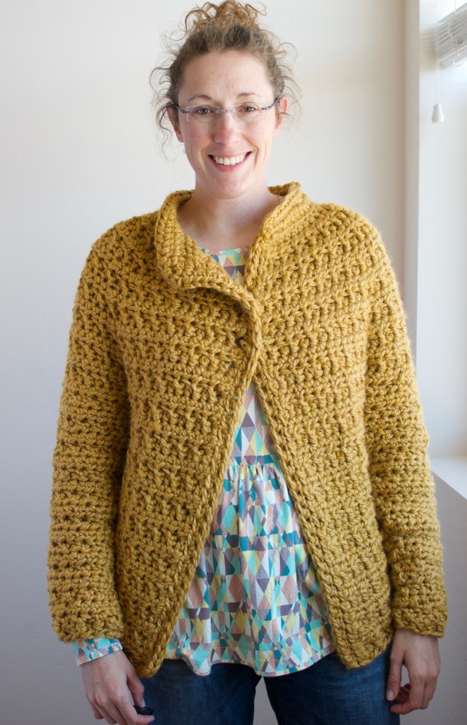 First I tried to make this pattern using Big Twist Collection Natural Blend Yarn in a size L / XL. I was DROWNING in the sweater. The armholes were down at my waist and the arms were a foot too long!