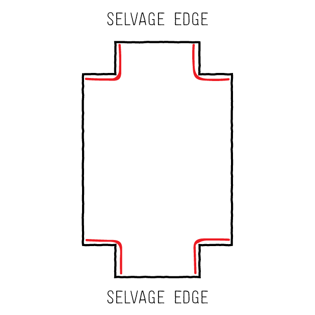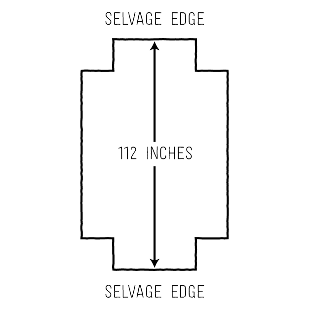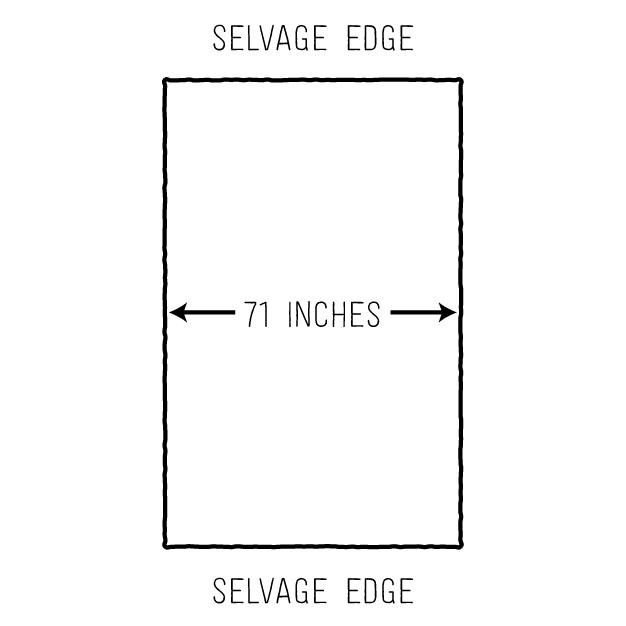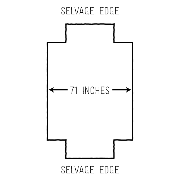 Cut two pieces of fabric each 71 inches x WOD (width of fabric). The bedding will be turned 90º from what you would expect. The top and bottom go from selvage edge to selvage edge.