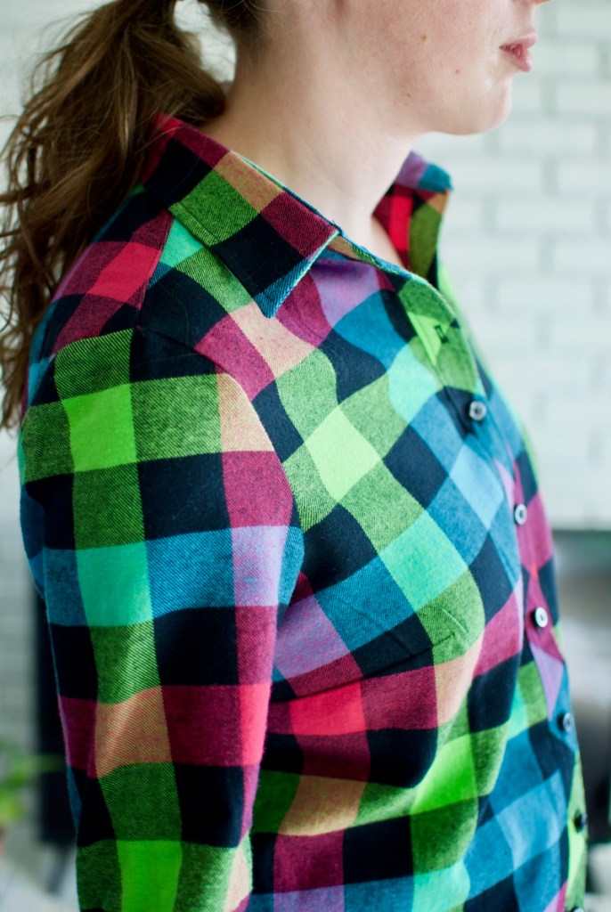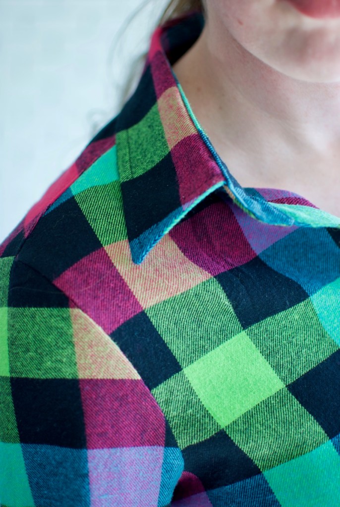 That plaid is gorgeous! I almost gasped as soon as I saw it (you probably did too when you found it at the market!) – so vibrant and the mix of colours is delicious. I wouldn’t worry AT ALL about pattern matching, I can’t imagine anyone noticing that seeing this shirt. The only thing they are going to think/say is, “Where did you get this gorgeous shirt that fits you like a glove???”