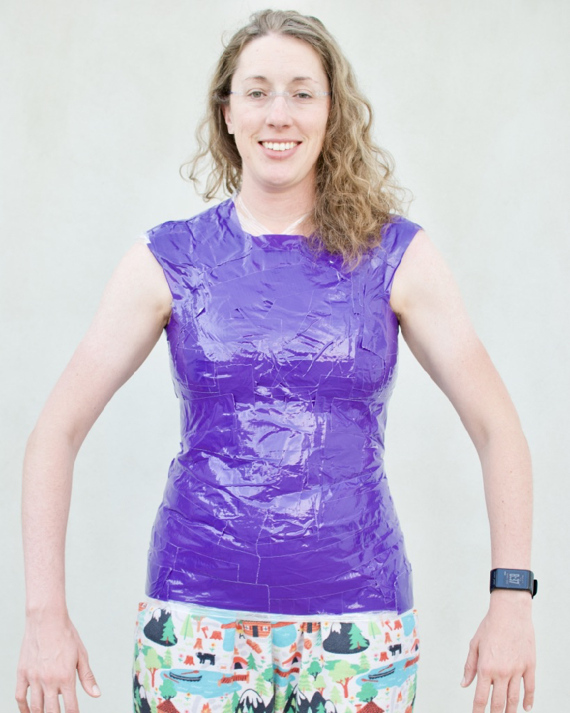 The method of creating a torso body form is pretty well documented elsewhere. This should make for an exceptional Technical Challenge! Instead of spending a lot of time describing the method, go check out this post: https://www.burdastyle.com/blog/diy-duct-tape-dress-form.