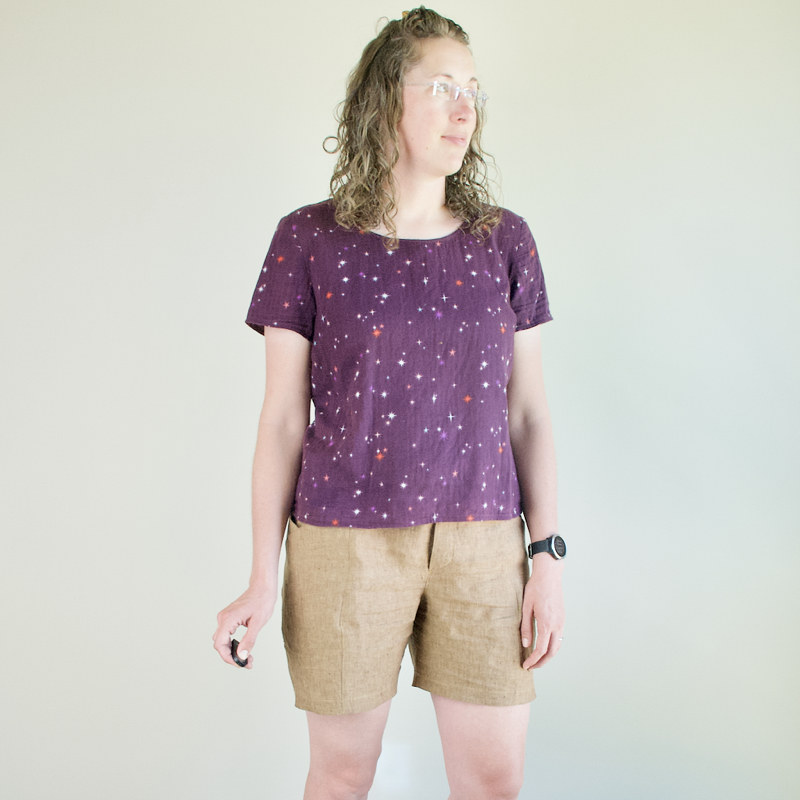 I used leftover slub linen from JoAnn’s to make these shorts. Nothing fancy.