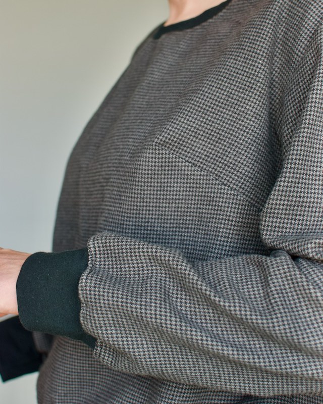 I needed a simple pattern to get over my jean fitting frustrations. I’ve been interested in the patterns from The Assembly Line. I really love the silhouettes. They’re just my style. I choose the High Cuff sweater for my “easy” project. My only word of caution is that the patterns are very expensive and the size range is limited.