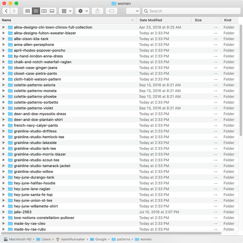 Those are the major offenders, usually. Whether I’m naming a file or a folder, I will begin with the pattern company, then the pattern name.