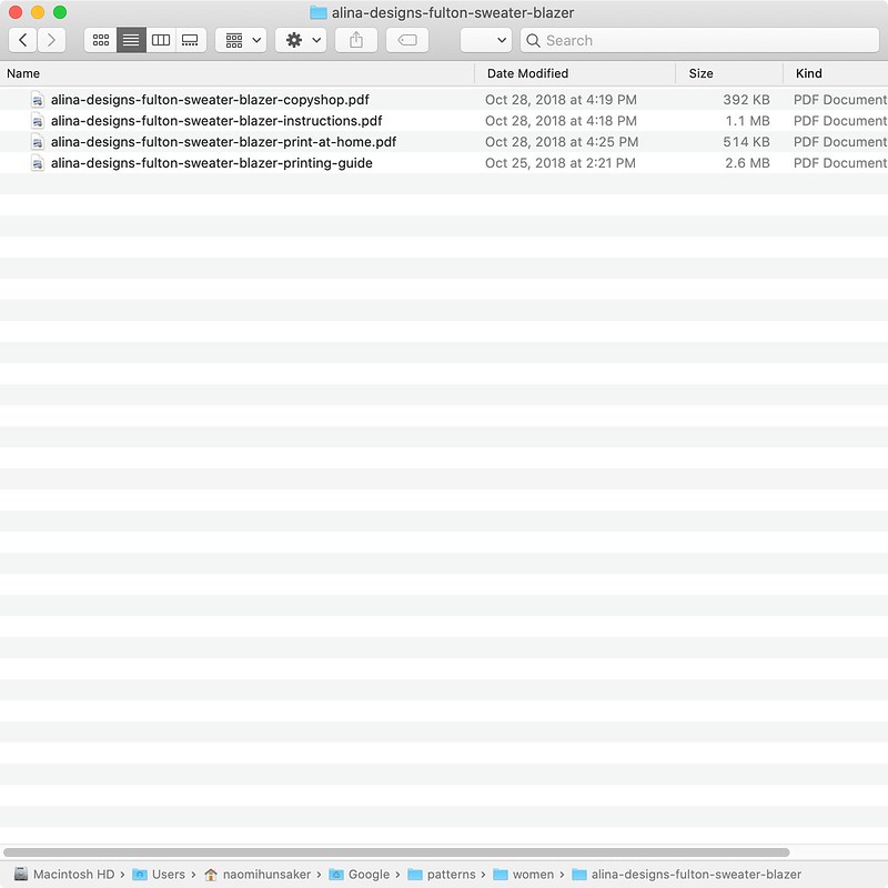If a pattern comes with more than a single file, I will make sure those files are organized in a folder that I have named explicitly according to my convention. If the pattern has only one file, I won’t bother with a folder and will just rename the file.