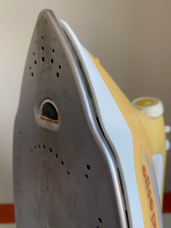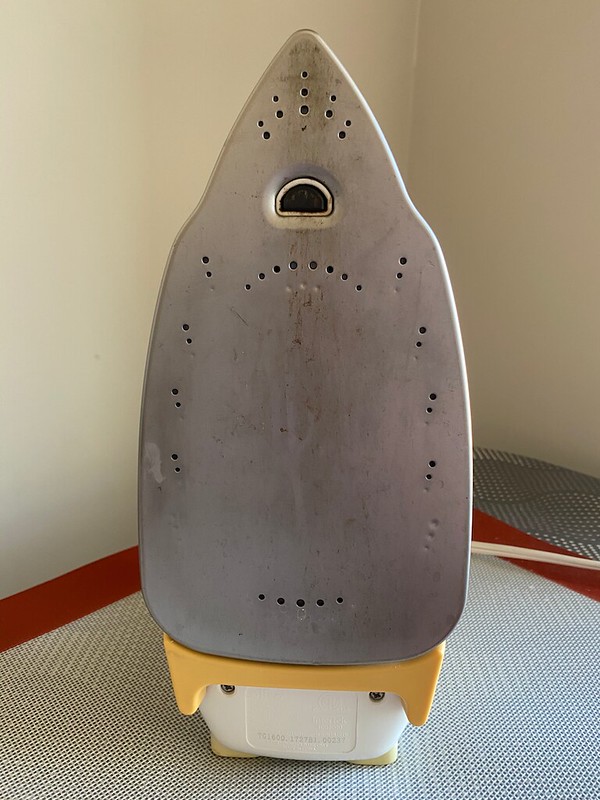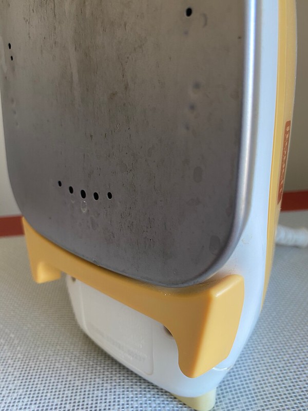 The bottom of the iron has a large yellow lifter. This lifter, too, has a habit of not fully retracting even though I’ve turned off the iTouch technology. This lifter loves to grab onto the edges of the fabric and wrinkle all to heck when ironing.