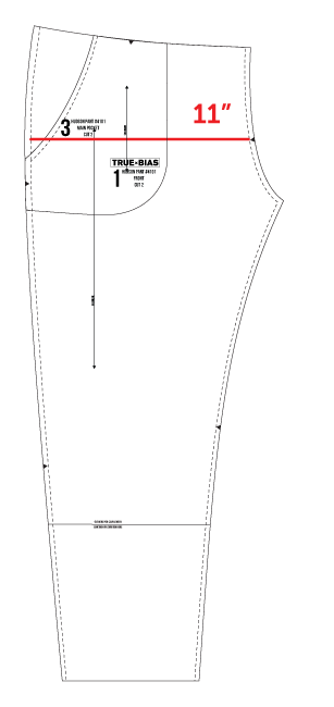 My front and back hip measurements are both 10 ½ inches. The pattern is 11 inches. This also gives me ½ inch of ease, which is good. Still on the right track. Track pants, maybe? I’ve gotta stop with the puns.