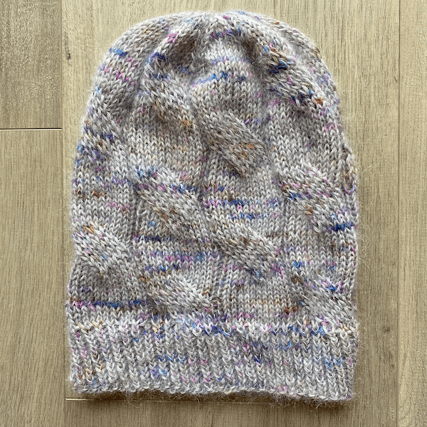 I’m catching up on some knitting projects that I posted on Ravelry, but want to delete. I just want all my projects centralized on my site, so I don’t have to search in multiple locations. I made this hat earlier this year to try out mohair yarn. I wasn’t sure if I would have an allergic reaction to the fibers. I do have an allergy to certain types of wool. I’m not allergic to merino, just the scratchy wool. This was also my first cable knitting project. Pretty exciting to see the cables form as you knit.