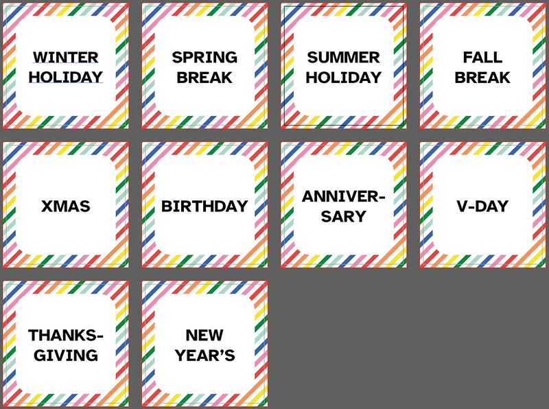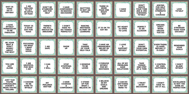 My backside designs fall into three categories: general cards used for task management and schedules, holiday cards used to signify holidays and important calendar days, and affirmations.
