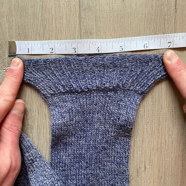 I typically knit 20 rounds of 1×1 rib for my cuff. I like to have a cuff long enough that it can hold up on my calf. I also found that I can make my cuff 8 stitches more than the sock. For example, if your sock has 60 stitches, I would make my cuff with 68 stitches. Those additional 8 stitches make sure that you can fit the sock over your heel when you put it on. The additional 8 stitches don’t cause the cuff to look wider than the rest of the sock if you are knitting the sock with standard stockinette stitches. Even with 8 additional stitches, a 1×1 rib or 2×2 rib will still pull the cuff inward as you would except.