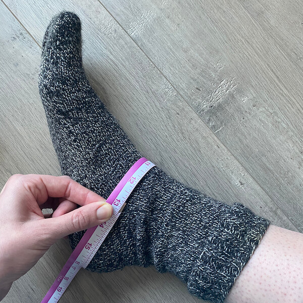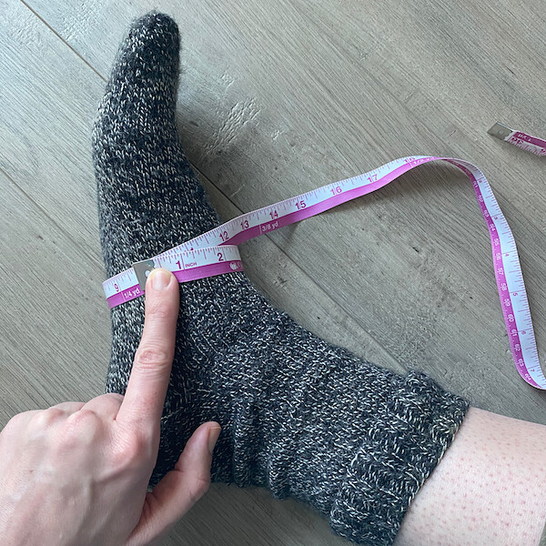 Ryan and I have the exact same length foot and we both have narrow feet for our shoe size. However, I have a flat arch and he has an extremely high arch. Around the diagonal, my heel measures 12 ¾ inches and Ryan’s measures 13 ½ inches. To account for this difference, he needs a longer heel flap and I need a shorter heel flap.