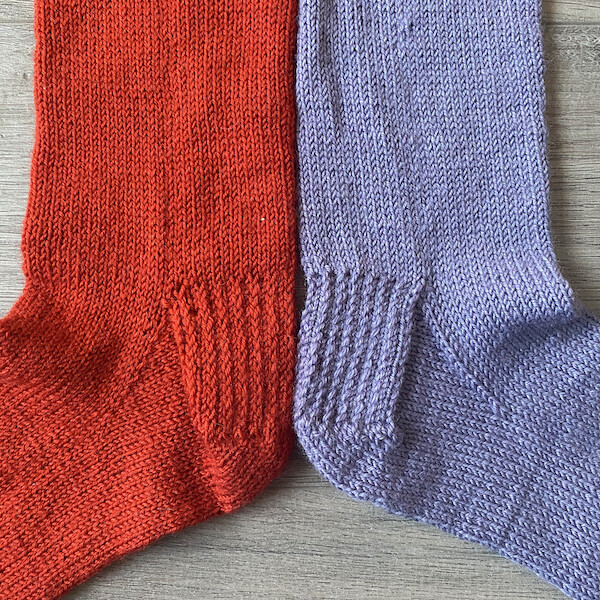 This post will walk you through how to knit a flap-and-gusset heel on a toe-up sock. It will look exactly like the cuff-down rounded heel from my last blog post. The best part of knitting a flap-and-gusset heel toe-up is that you don’t have to pick up stitches at any point. You also don’t need to redistribute stitches if using the magic loop method. I definitely prefer toe-up socks now because the method is ever so slightly easier to manage, as you will see.