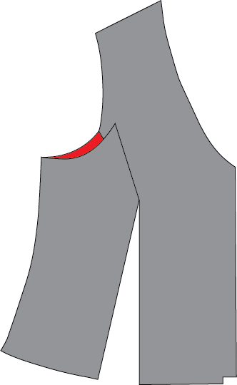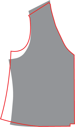 If you follow me on Instagram (handmadephd), you’ll know that I worked through many muslins, and the only way I could remove the gaping at the front armhole is to do this alteration. I cut from the armhole to my bust point but didn’t cut through the bust point. I cut another line vertical from my hem to the bust point, again making sure not to cut through the bust point. I was then able to overlap the amount I needed at the armhole while simultaneously spreading at the hem. I had to redraw my armhole, shown in red.