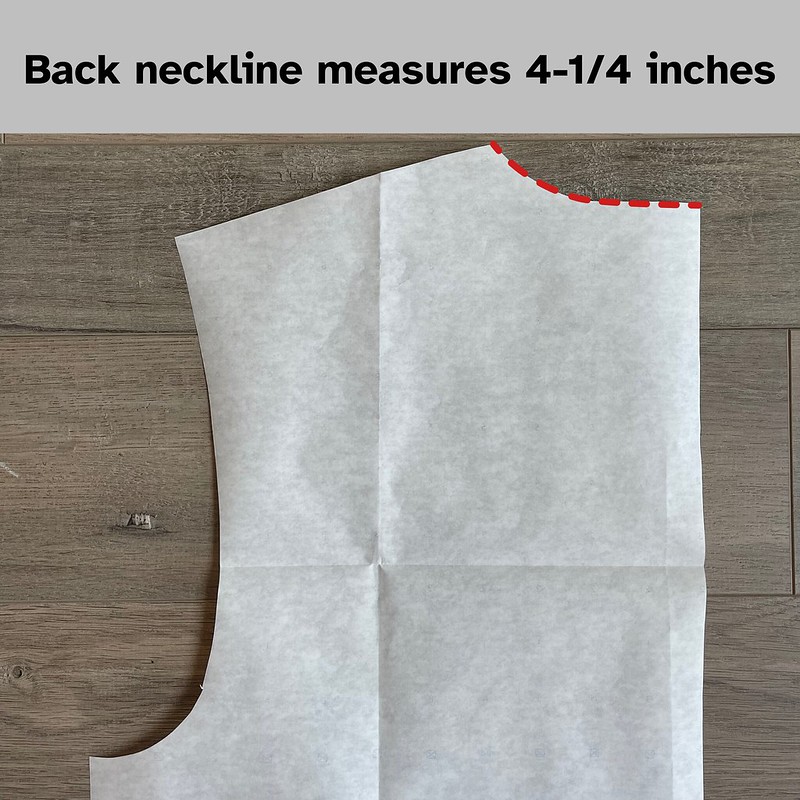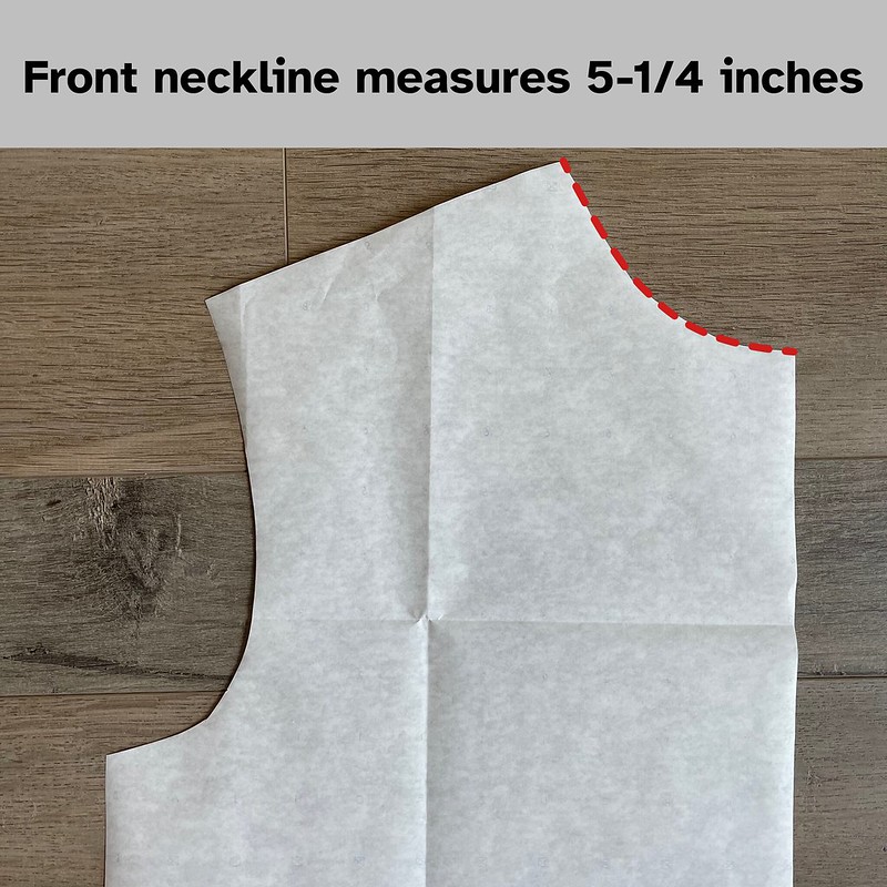 Ryan’s front neckline measures 5 ¼ inches from the center front to the shoulder seam. The seam allowance for this pattern is ⅜ inches.