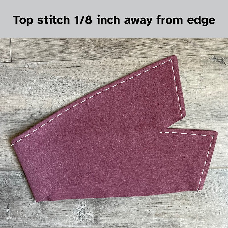 Top stitch ⅛ inch away from the edge, making sure the bottom raw edges stay aligned together.