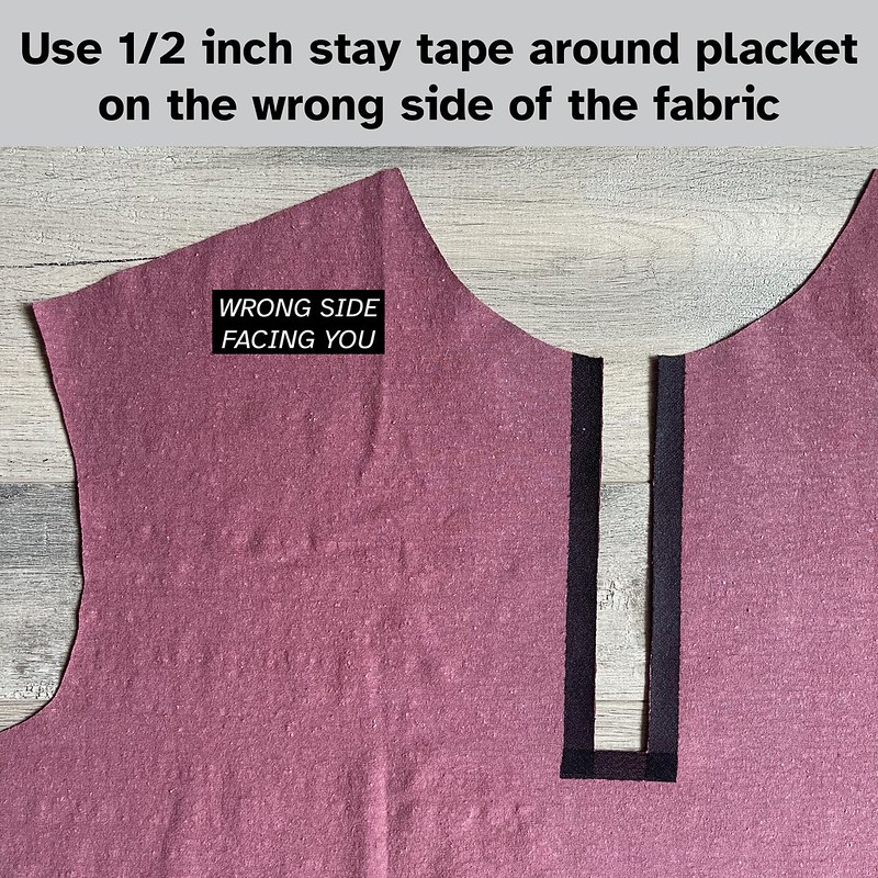 I live and die by the SewKeysE stay tapes. They sell both single-sided and double-sided stay tapes. For cases like this placket, I used Extremely Fine Fusible Knit Stay Tape to lightly stabilize the fabric. The first time I made this pattern, I didn’t use stay tape and immediately regretted it.