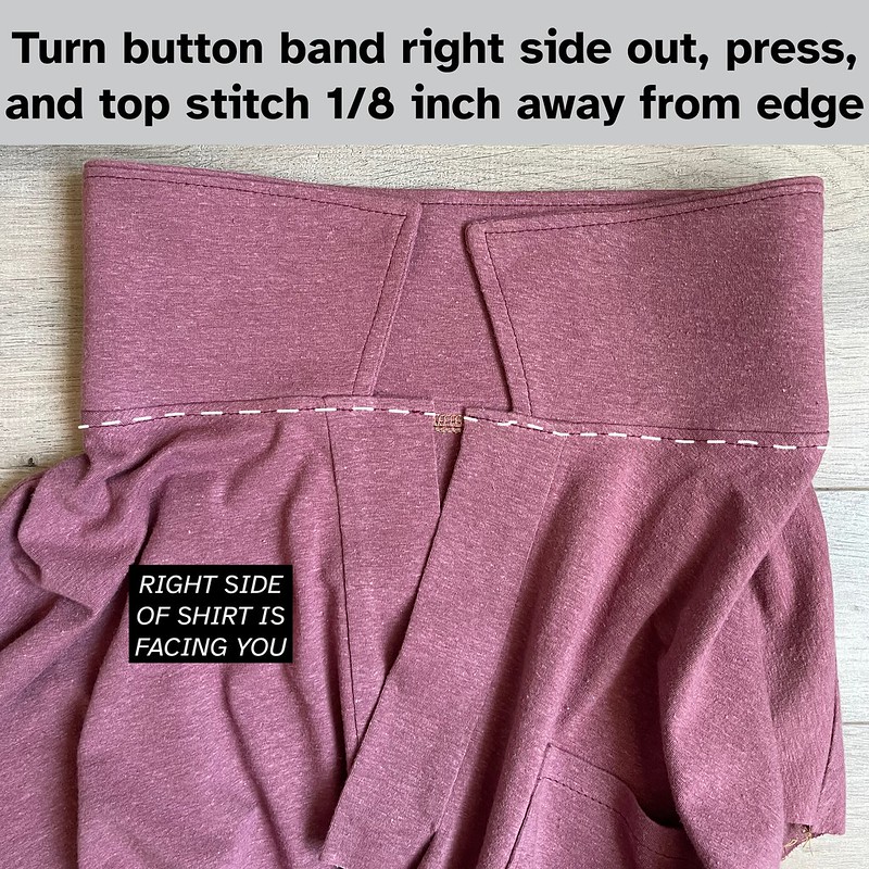 I like to top stitch the bottom of the button placket to make sure it stays down and doesn’t try to flip upwards. However, I think this top stitch is just a personal preference.