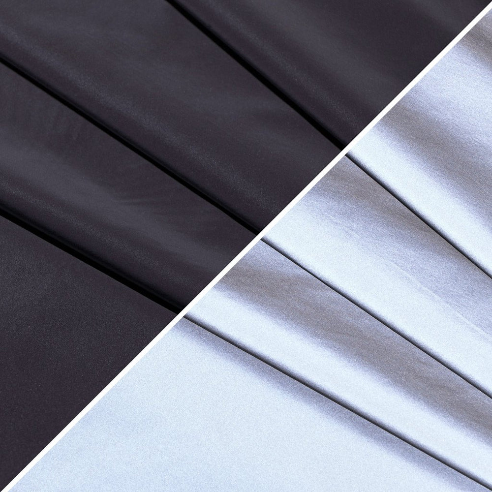 The outer fabric comes from Blue Moon Fabrics and is completely light reflective for maximum visibility at night. I went with silver for this jacket, but I may have to make another version with the rainbow reflective fabric.