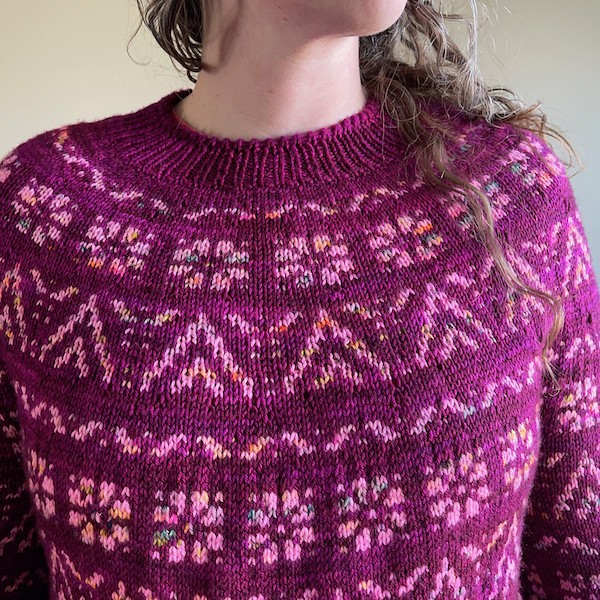 For my version of the Sipila sweater, I was able to sneak in German short rows after the colorwork design before the yoke was separated for the body and arms. I loved knitting that sweater because I could fine-tune the fit as I was knitting it. The Nadie sweater has colorwork past the yoke so adding it right before the arm/body split won’t work.