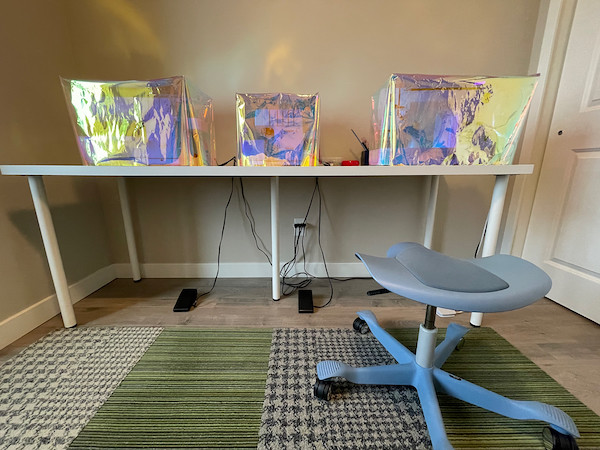 I only needed 2 yards for 12 gauge vinyl to cover all three of my machines. I got my vinyl from Big Z Fabrics: Tinted Plastic Vinyl Fabric, Multi-Color (12 Gauge).