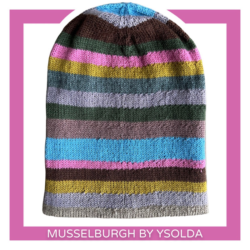 I found the perfect hat pattern! The Musselburgh hat from Ysolda pattern is awesome. All you have to do is pick your hat size, choose whatever yarn and needle you want to use, and start knitting. There’s a point where you check your knitting gauge, and then you follow the instructions for your gauge and size. You don’t have to swatch first to get your gauge! How amazing is that?