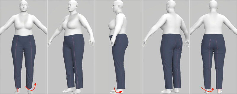 As I was working through the courses at Browzwear University, I got to the lesson about changing fabric type. The app comes with hundreds of fabrics, and they had a standard stretch denim that I could use to study the Closet Core Ginger Jeans pattern. I had a very hard time fitting the Ginger Jeans years ago, and I wanted to see if my new method of assessing grainlines would work?