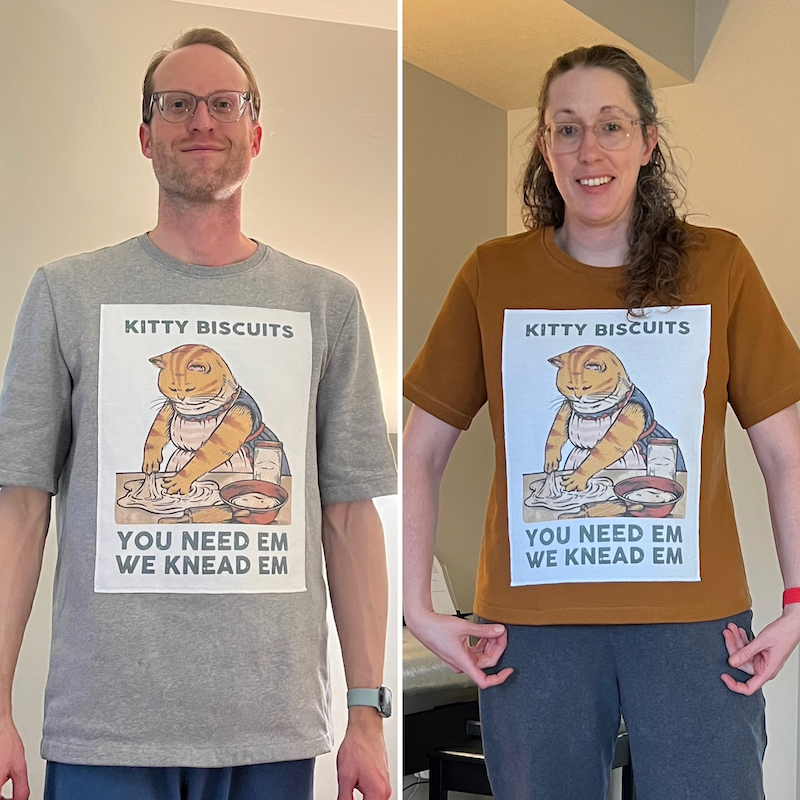 We received adorable sweatshirts as a Christmas present, but the sweatshirts didn’t fit great. Ryan looked like he was wearing an oversized halter top with ¾-length arms, and I looked like I was wearing a too-small dress. Obviously, I needed to save the design and put it on something we could wear! Here’s what I did.