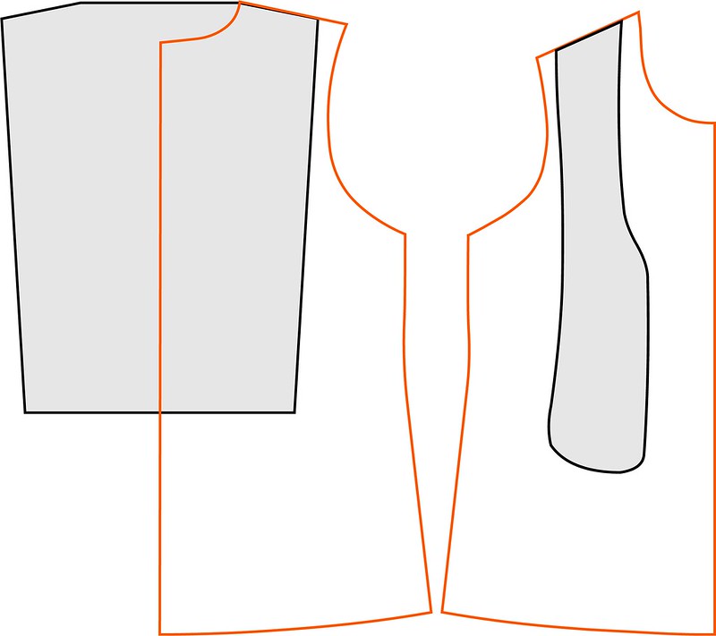Notice where the slope of the back piece starts compared to the back of my tried-and-true t-shirt pattern? I ensured the backpack shoulder straps didn’t start too close to my neck. I wanted the outside of the strap to hit right at the AC joint, the bony protrusion at the top of the outer shoulder. The straps also are angled precisely to my shoulder angle. The back piece angle matches my back shirt pattern, and the front shoulder strap matches my front shirt pattern. I’ve spent a lot of time perfecting our t-shirt pattern over the years, so I know the shoulder slope is spot on for Ryan and me. Luckily my mom and I have very similar upper body shapes, and she can wear the same tops. So I didn’t have to calculate her shoulder slope.