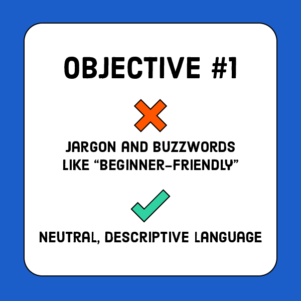 - Methods and techniques should avoid jargon and buzzwords and instead use neutral, descriptive language.