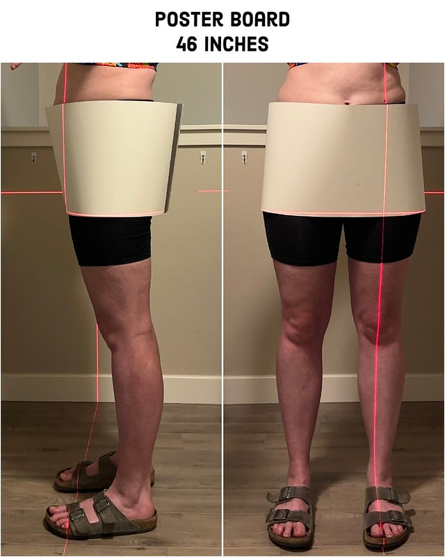 I’m intrigued by your poster board/laser example. In the past I’ve used a poster board but thought it needed to be perfectly cylindrical-essentially lining up with the vertical laser as well the horizontal laser. In your photos, I see your poster contouring around belly/butt/hips but still keeping the poster board level horizontally. My method resulted in balanced skirts & pants, but they felt sort of oversized. I suspect your approach would give a starting size that allows for closer contouring around the hips/butt/belly in pants while still maintaining balance lines. Interesting concept that I’ll have to experiment with.
