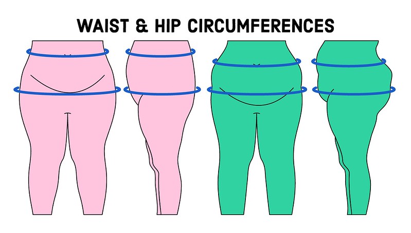 The next variables are waist and hip circumference and the relationship between those two measurements. Where these measurements are taken is debatable, making it hard to decipher how they relate.
