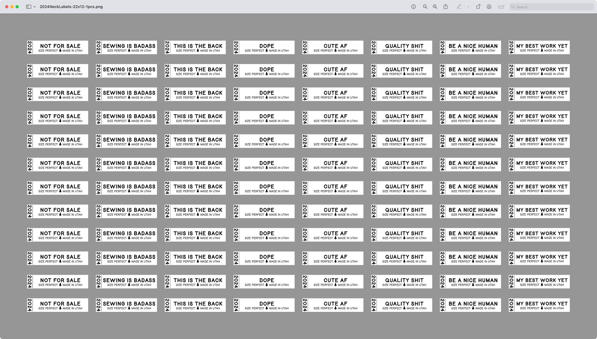 This year’s labels are 2-1/4″ wide by 1/2″ tall. I have 8 different versions and 12 copies each for 96 labels for the year. More than I need, but that’s OK. I plan to share the extra with friends. Click the button below, which will open a tab to Gumroad where you can download the Adobe Illustrator file: