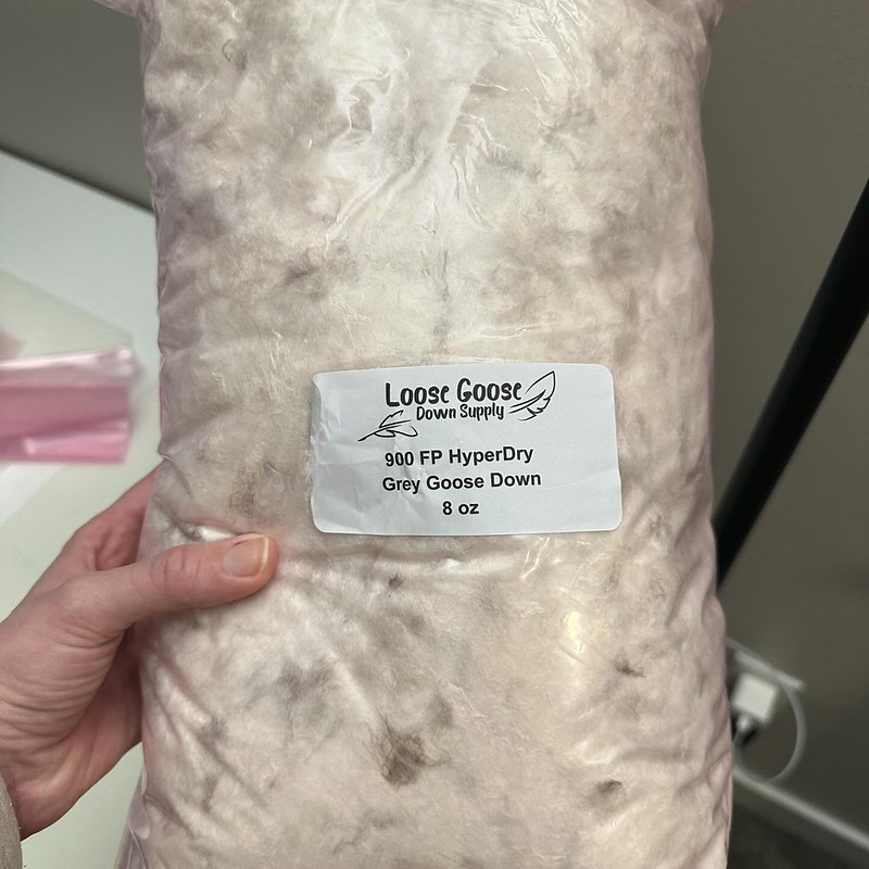 After researching the internet, the company that consistently gets high reviews is Loose Goose Down Supply. And for good reason! After working with the down, it was well-cleaned and packed, not clumpy, reasonably sorted, and I encountered less than a dozen feathers. I had a heck of a time deciding what type of down to use and how much I needed, so let’s talk about the features of down.