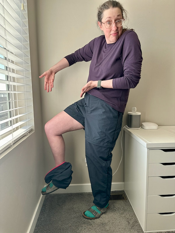 I made version A, the full-length pants with zip-off legs. I didn’t include the front patch on the legs because I didn’t want the extra weight.