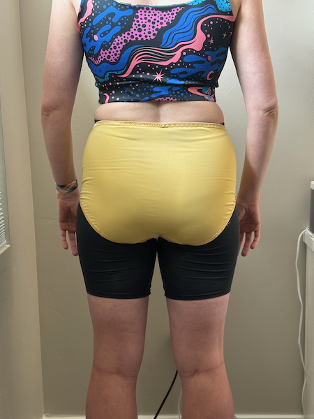 I did a complete analysis of the median Knickers a while ago. I needed to update my pattern pieces; this is just a review of my changes. You would think, “Oh, my underwear is too big now. I should be able to just go down a size.” Unfortunately, my changes aren’t straightforward because my body didn’t conveniently shrink uniformly. My shape has changed dramatically.