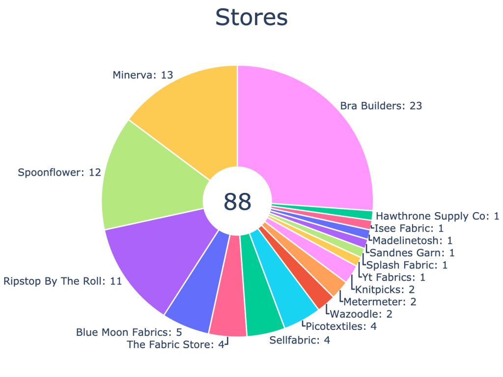 Of the $3,901 I’ve spent, $2,563 went to fabric and $648 to notions. That makes up more than 80% of my spending this year. The rest has been on things like machine repairs, patterns, yarn, samples, and fabric for pattern testing.