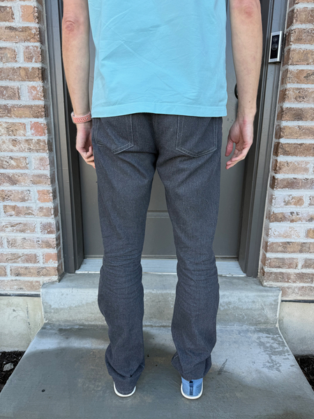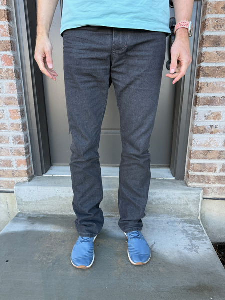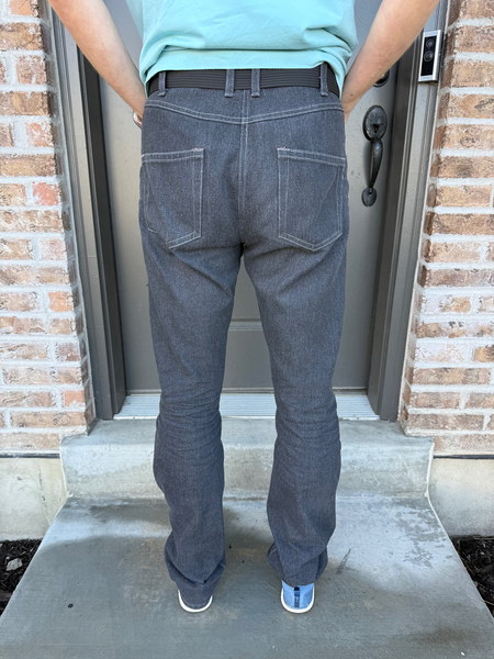 Ryan has desperately needed new jeans for several years now—not because his jeans didn’t fit or were too old, but because even after prewashing the fabric, they still shrank significantly lengthwise over time. Annoyingly, his jeans ended up several inches too short and looked ridiculous. Unfortunately, I didn’t have enough fabric leftover to add panels to the bottom to lengthen them (similar to the Shop Pants pattern). I just couldn’t take his high-waters any longer.