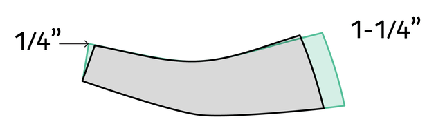 To do this, I made a cut from the top of the yoke almost all the way down to the bottom, then overlapped the pieces by 3/4 inch.