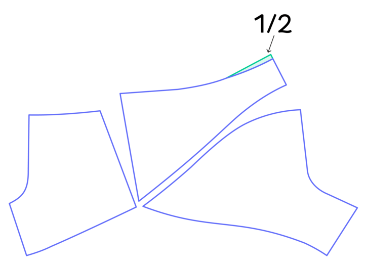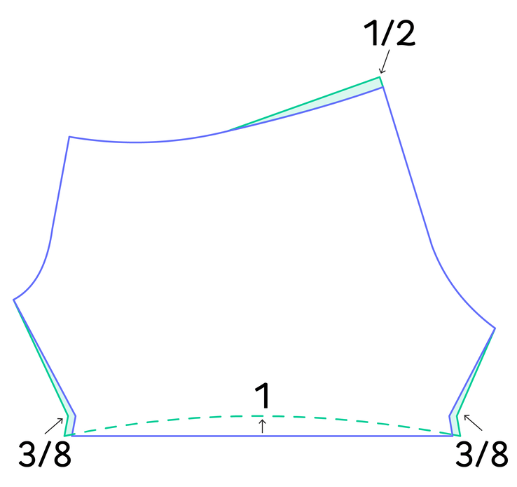 In addition to curving the hem, I widened the leg opening by 3/8 inch on both sides and raised the center back by 1/2 inch (same as the outer shorts).