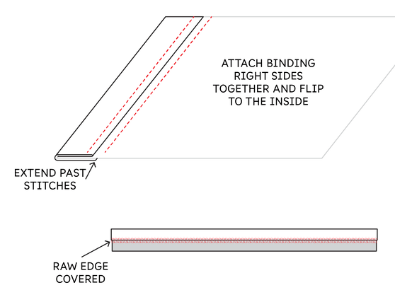 I ended up making two test versions using the CV Linens spandex just to figure out my preferred attachment method. Assuming you’re attaching your binding in the round like I am, here are a few different ways you can approach it.
