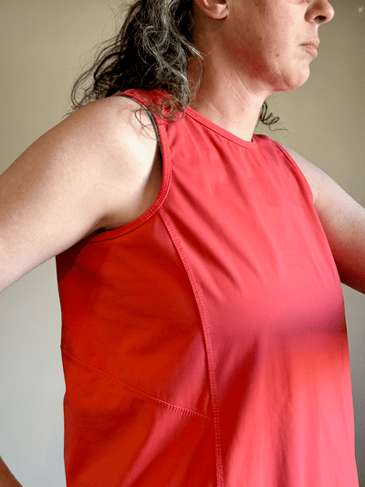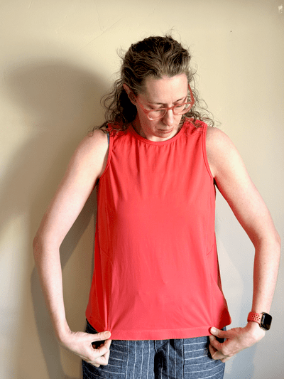 In the end, there are quite a few inconsistencies in the size chart and final garment measurements. The pattern doesn’t include any guidance on how the extended size range differs from the regular range. There’s also no explanation of where or how to measure your body when choosing a size. And it would be really helpful to know the intended fit of the garment since the pattern has more ease at the chest and less at the hips, which feels counterintuitive for an athletic tank top. All the examples I showed at the beginning (minus the Hoka) have a tighter fit at the bust. You’ll get better range of motion the closer the garment sits to your body and that’s the point of athletic styles, full range of motion.
