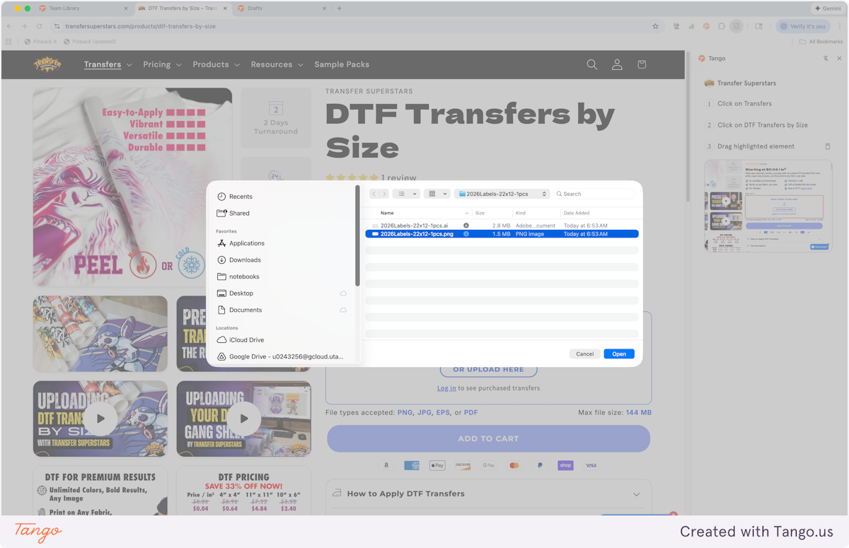 Step 4: Select “2026Labels-22×12-1pcs.png” from file upload menu
