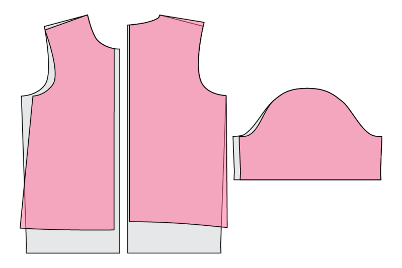 With the shoulder seam placed correctly on the top of my shoulders, I immediately identified the problem. The back hem was sitting much higher than my front hem, even though when I originally made the pattern, my center front and center back were on the same horizontal plane. In the image above, on the left I’ve force the shoulder seam in the correct place and on the right the hem is balanced.