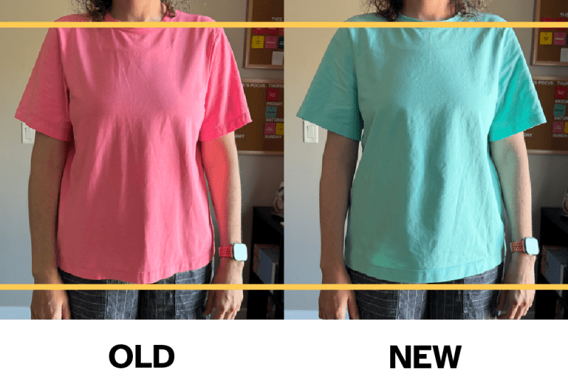 I’ve lined up the shoulder seam on the old shirt, meaning the hems are currently unbalanced. The front view should look essentially the same.